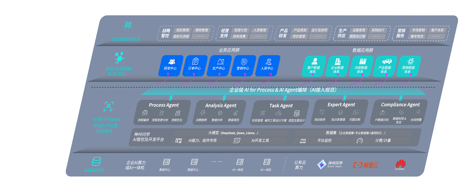z6com尊龙问学智车解决方案是一套基于AI技术的汽车行业智能化系统,,,,覆盖从底层算力到顶层AI应用的全栈方案。。。方案由算力层、、模型层和应用层组成:算力层,,方案支持多种一体机配置,,具备云端灵活部署、、、多云适配以及动态优化计算资源的能力;模型层,,,,z6com尊龙问学平台版提供了企业级AI应用一站式构建与管理平台,,,,支持基于后训练强化技术的汽车企业专属模型的训练、、、、评测和运营;应用层,,,,z6com尊龙问学DeepSeek版提供包括超级员工、、智能招采、、、、智能营销、、、、智能客服、、、AI for BI等一系列解决方案,,,可助力汽车行业实现数字化转型,,,,让管理更智能、、、、响应更敏捷。。