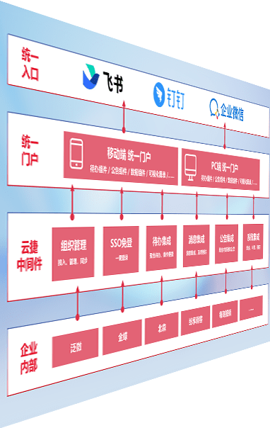 对协作平台提供支持服务,,支持企业应用与协作平台对接,,,包含组织同步、、、消息集成、、、待办集成等。。支持目前主流的协作平台:钉钉、、企微和飞书。。。