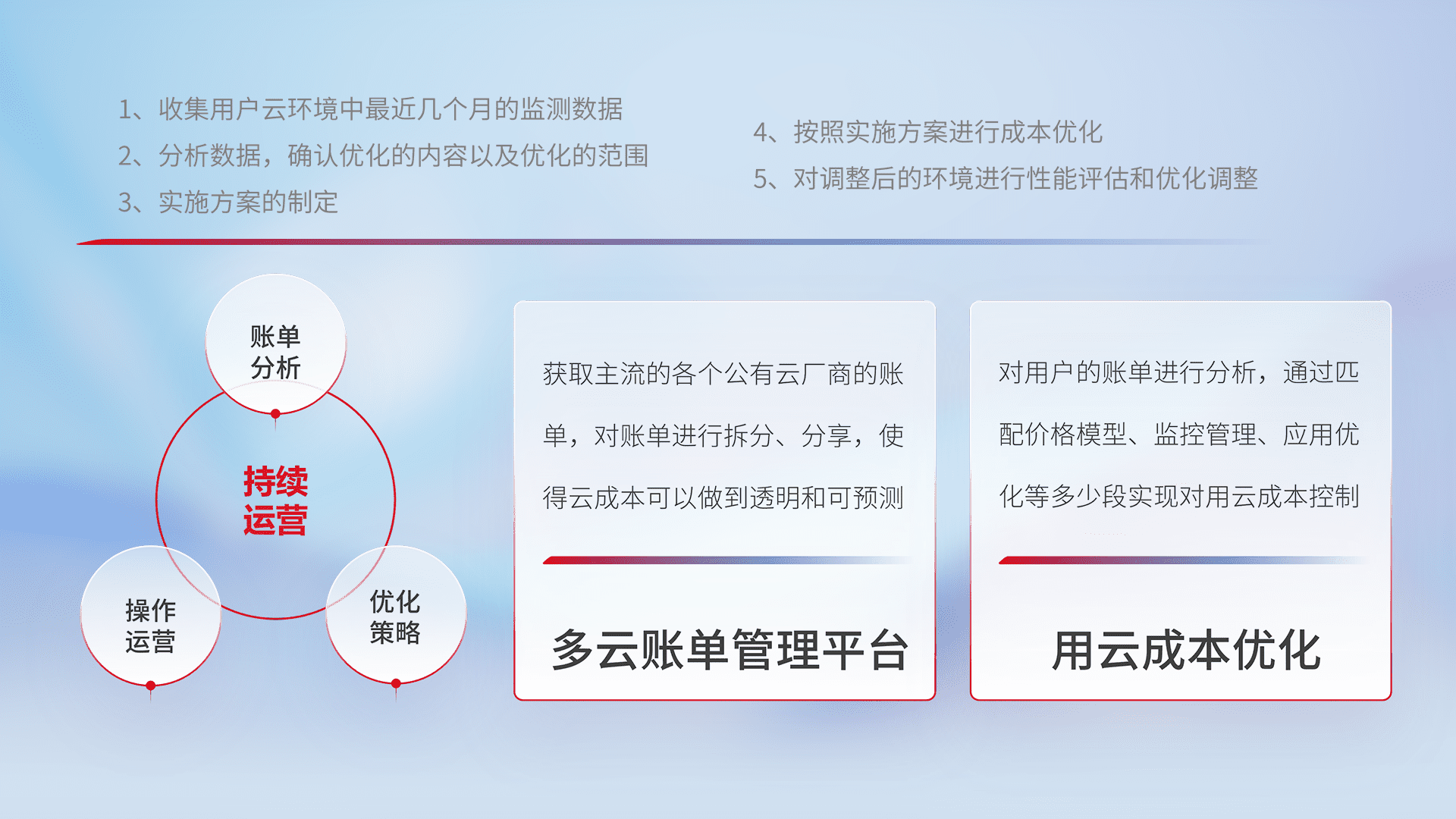 监控业务系统资源开销,,,,对资源的消耗精确计量,,实现费用的透明化管理,,,不断提升资源使用率,,,,调整资源购买方式,,,降低资源费用成本,,,,用云成本可预测、、、、用云费用可优化,,,云资源配额有据可依。。。